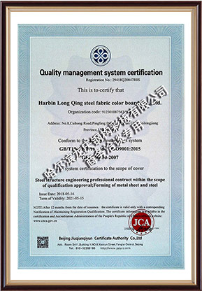 龍慶鋼構彩板有限公司 目前擁有鋼結構制造一級、鋼結構承包一級、施工總承包二級、ISO9001質量體系認證、信用等級AAA級企業。公司總占地30萬平米,在職員工1000余人,同時擁有重鋼、輕鋼生產基地5個,年產值20萬噸。主要涉及有:鋼結構系列、彩鋼壓型板系列、彩鋼夾芯板系列、組合樓板系列等工程配套產品。廣泛應用于:工業廠房、體育場館、高鐵站房、機場航站樓、超高層、畜牧行業、乳品行業、倉儲冷鏈物流、石油化工、醫藥、食品加工行業、橋梁、物流等等。